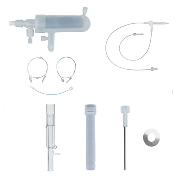包括PFA氟喷雾室、PFA端盖、两个添加气体端口、PFA注射器连接器、气体和排水管路、超高纯石英炬管和带铂屏蔽的 Pt中心管(有1.0 mm、1.5 mm、2.0 mm或2.5 mm内径可选)。